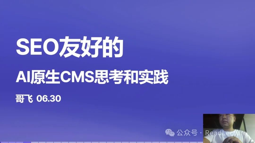 我们开始了。这个PPT实际上是6月30日在深圳线下会中准备的。但由于现场增加了一些环节,并且我们有10位嘉宾,我的分享时间被压缩了。压缩后,我感觉没有给大家讲清楚,很多内容我只给出了结论,没有解释为什么会有这个结论,以及我是如何思考的。因此,今天我将再次与大家分享。标题是“SEO友好的AI原生CMS思考和实践”,这里边的内容主要是关于这一主题的深入探讨。