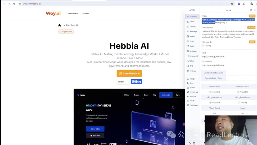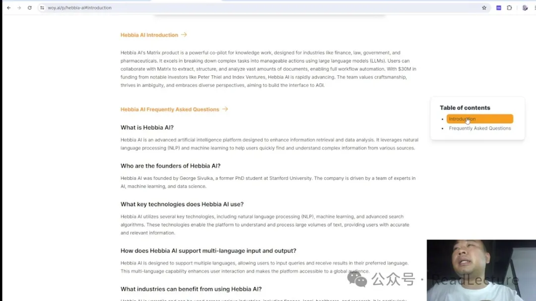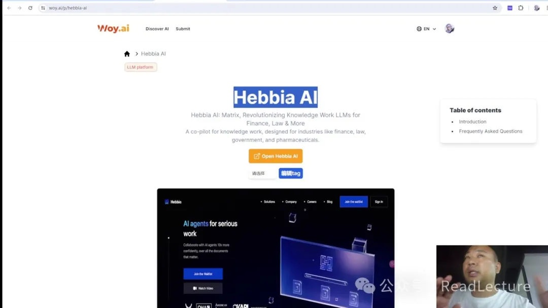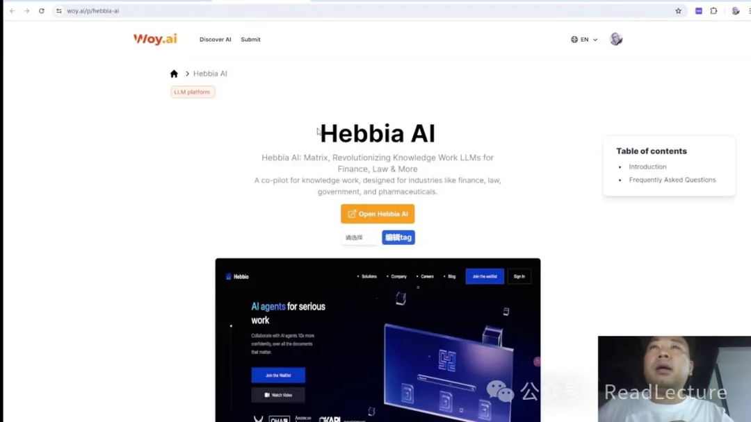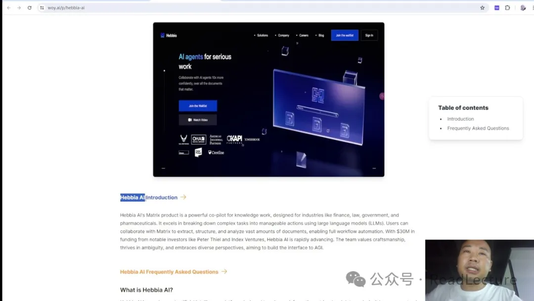 这里面是PageIntro的一句话介绍。稍后我会解释woy的内容来源,但现在还不是时候。我们现在介绍的是,例如这个Hebbia AI,它对应的是PageName。这就是PageIntro,我们点击这个页面。