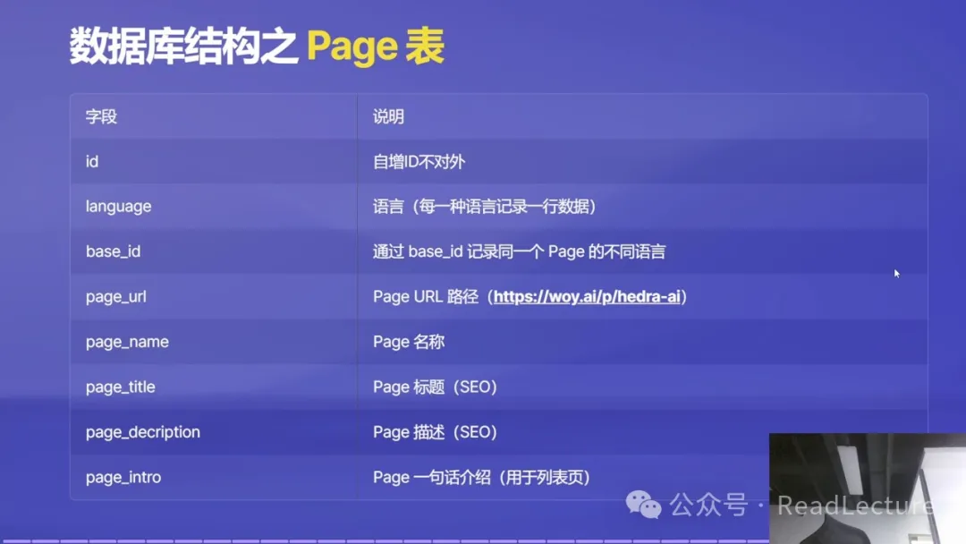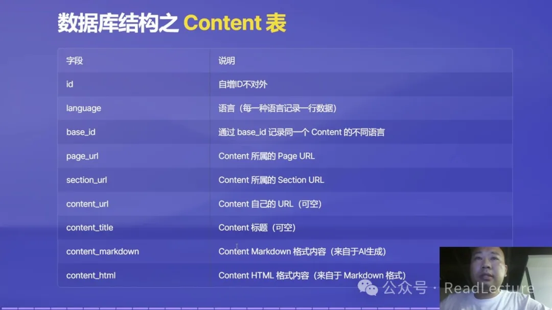 - Content表结构详细探讨,与Page关联,支持多语言,包含language和base_id字段。