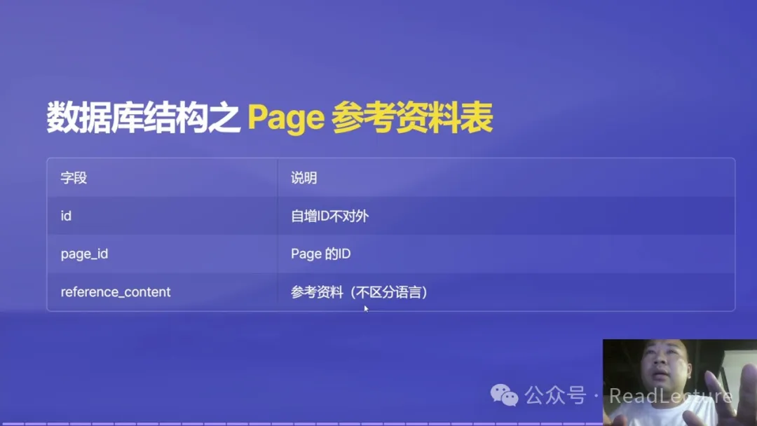 我提取了一些关键字段。这里有一个Page参考资料表,稍后将详细介绍。这个表用于回答刚才的问题,即使用哪些内容和资料。
