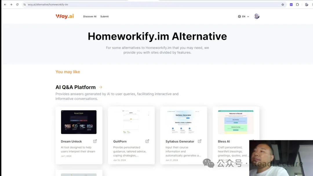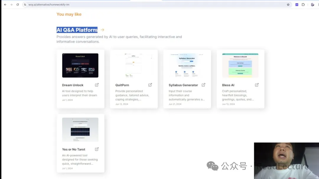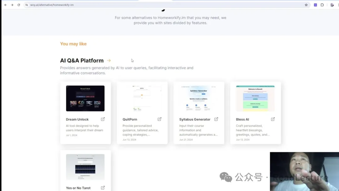 关于替代产品,请看下方列表,我将为您介绍在AI Q&A分类下有哪些可替代的产品。目前,该页面尚未完成。我已经完成了任务,明天我会与同事讨论,指出还需要改进的几个方面。举例来说,在这里边标题上,可能加上这个会更好。