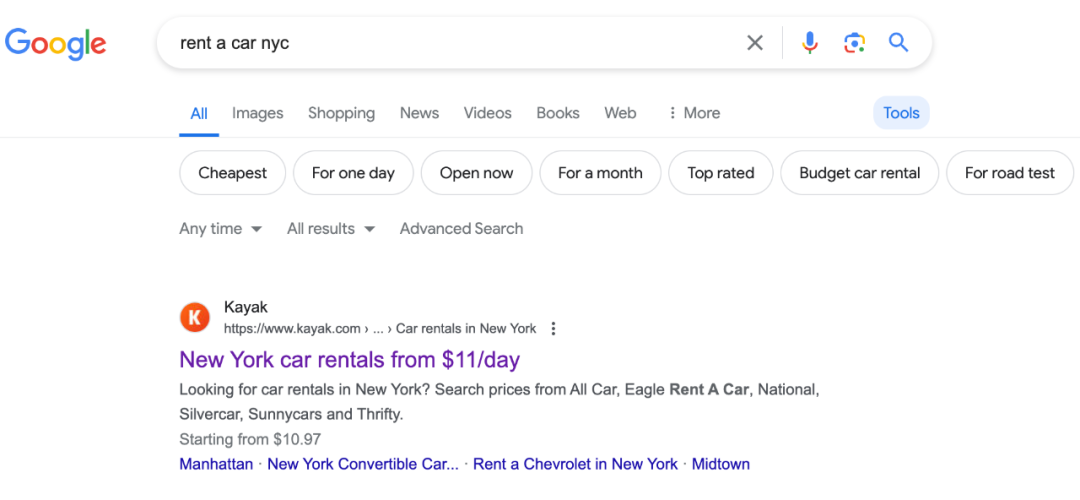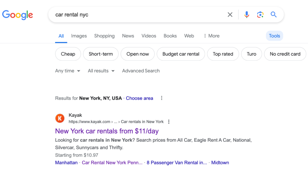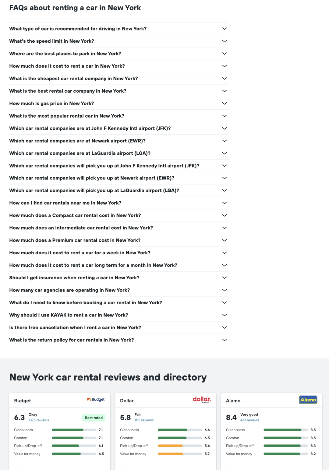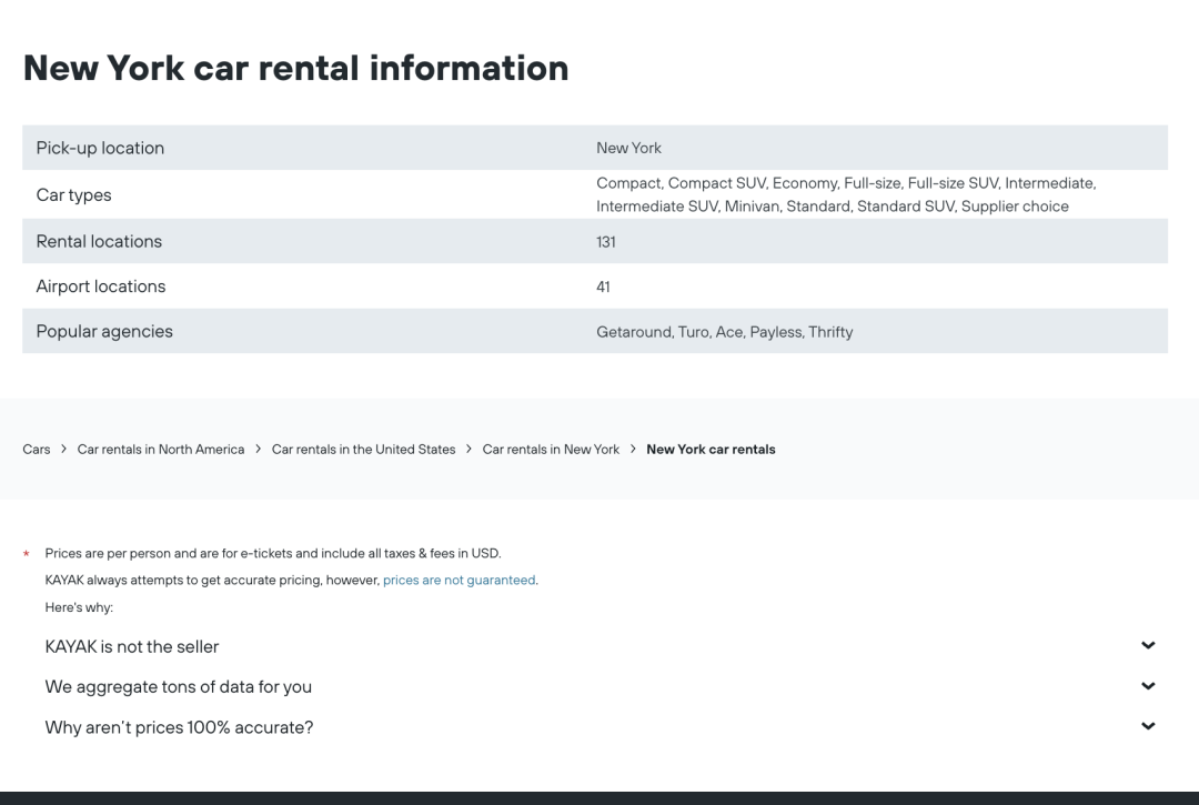 这个页面核心关键词是 car rental nyc ,可以从这个页面学习一下这些大站为了获取一个关键词的排名会怎么去做一个页面。