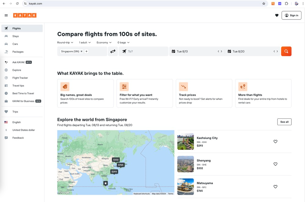这个页面是海外知名大站 kayak 的一个页面。
