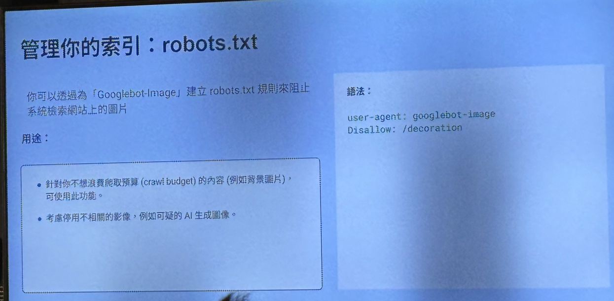 - 假如不希望被爬取的文字或者图片,就用robots.txt来防止消耗爬取预算