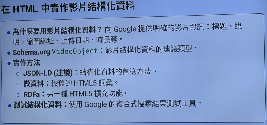 - 影片标记/结构化资料: 协助 Google 理解您的视频内容