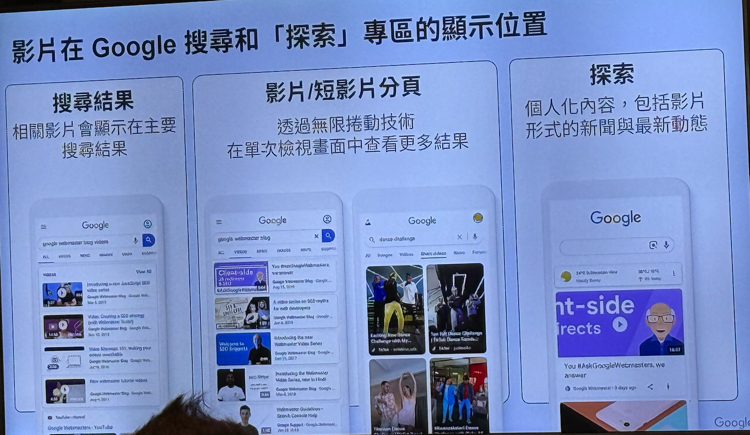 - Google 的整合搜索:视频会出现在Google综合搜索结果、图片搜索和专属的视频标签页中。